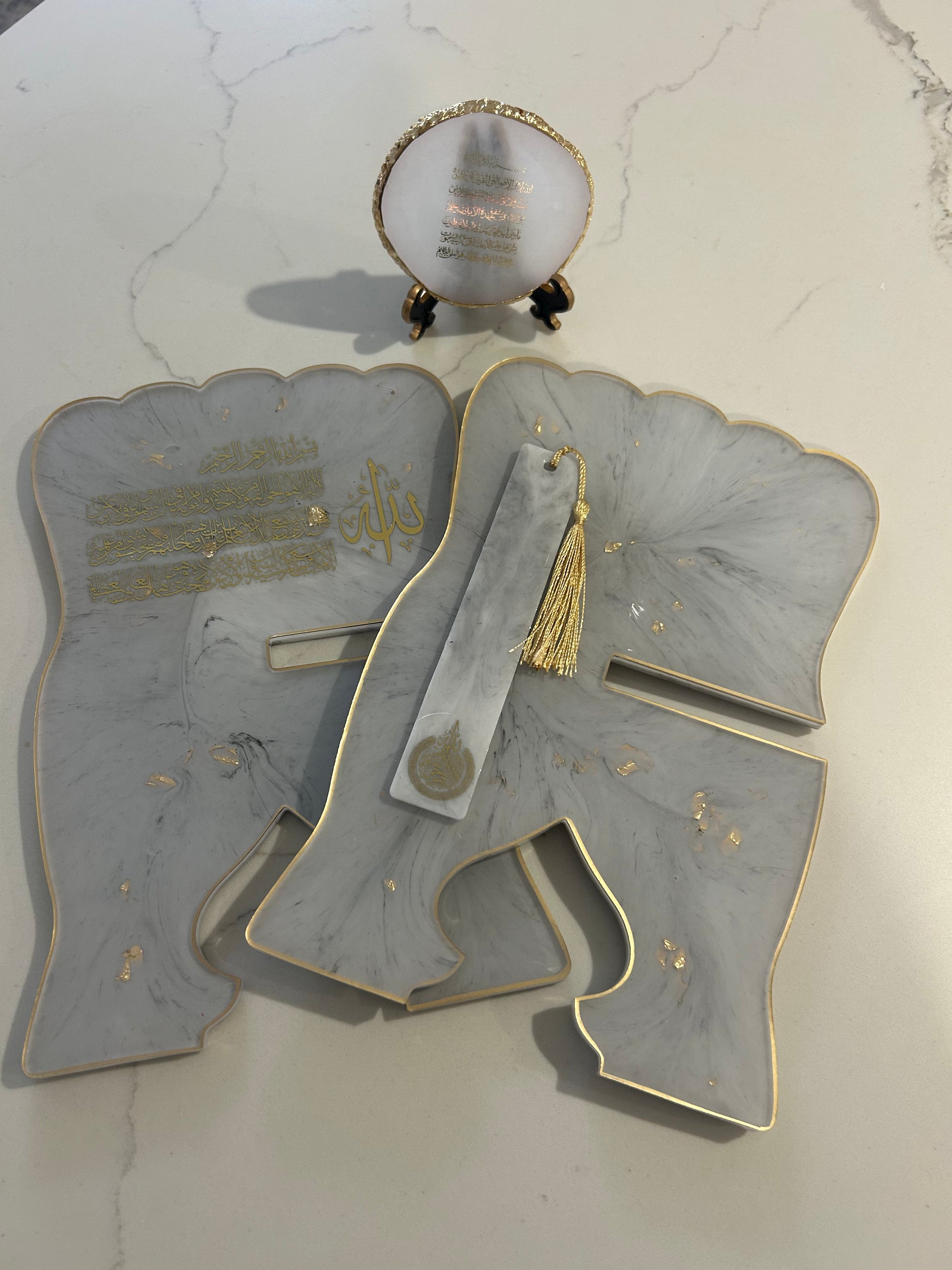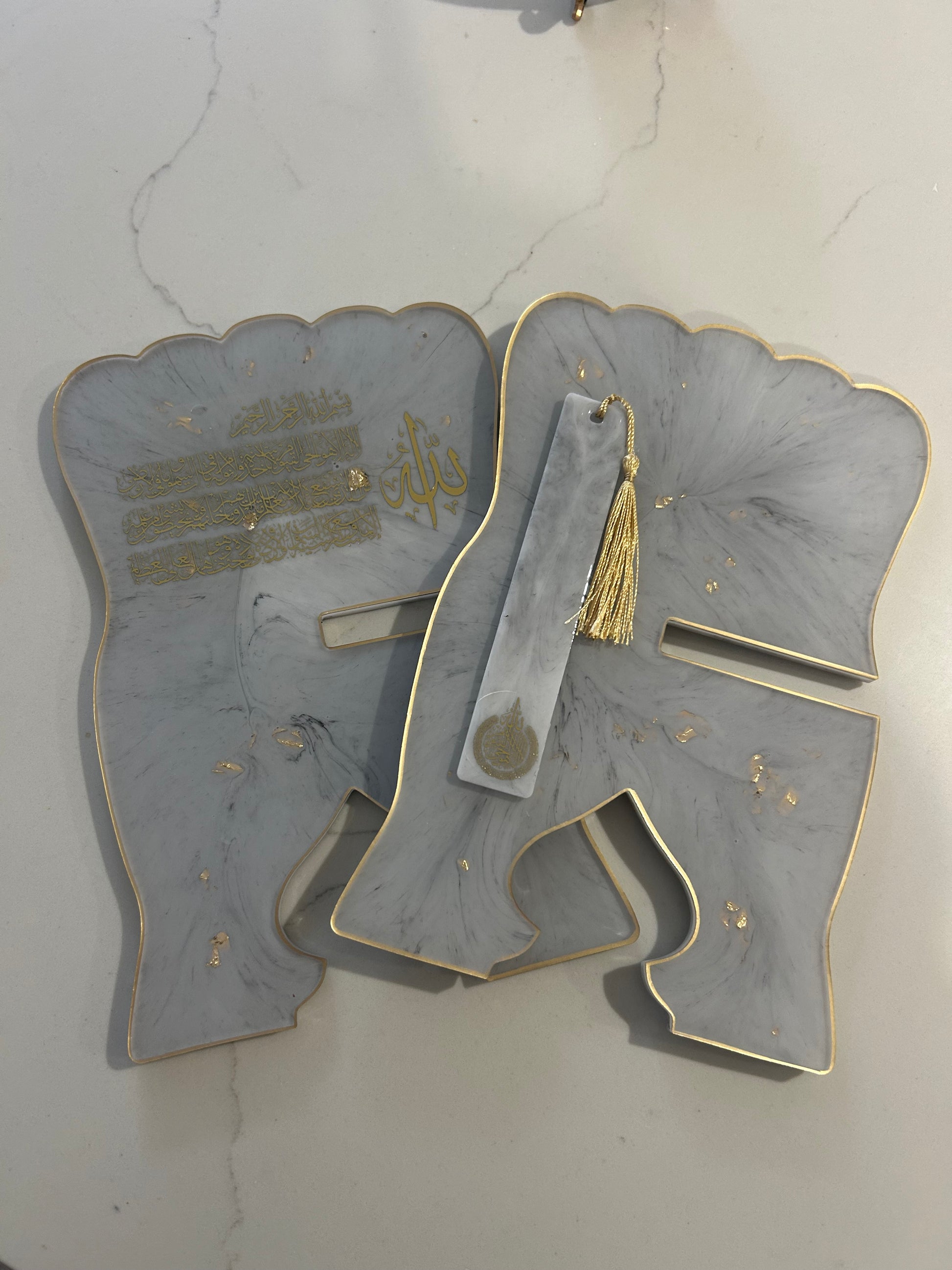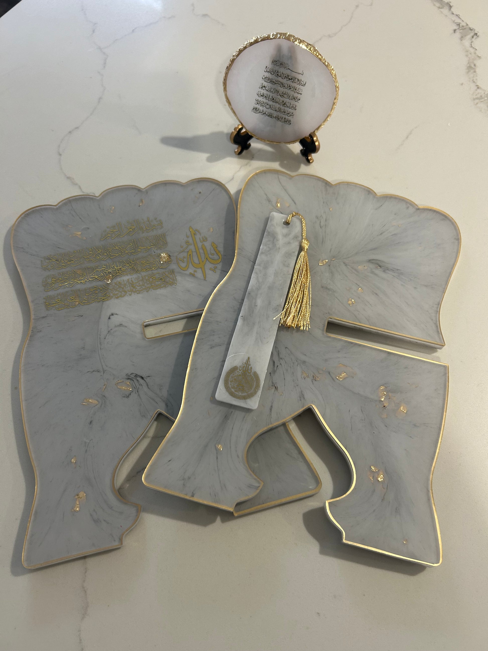 Made thıs beatıful pıece for custom order and add ayatal kursı and add golden flakes to decorate thıs ıslamıc stand comes wıth bookmark as well message now ıf you lıke to order thıs beatıful pıece .0403 731 807