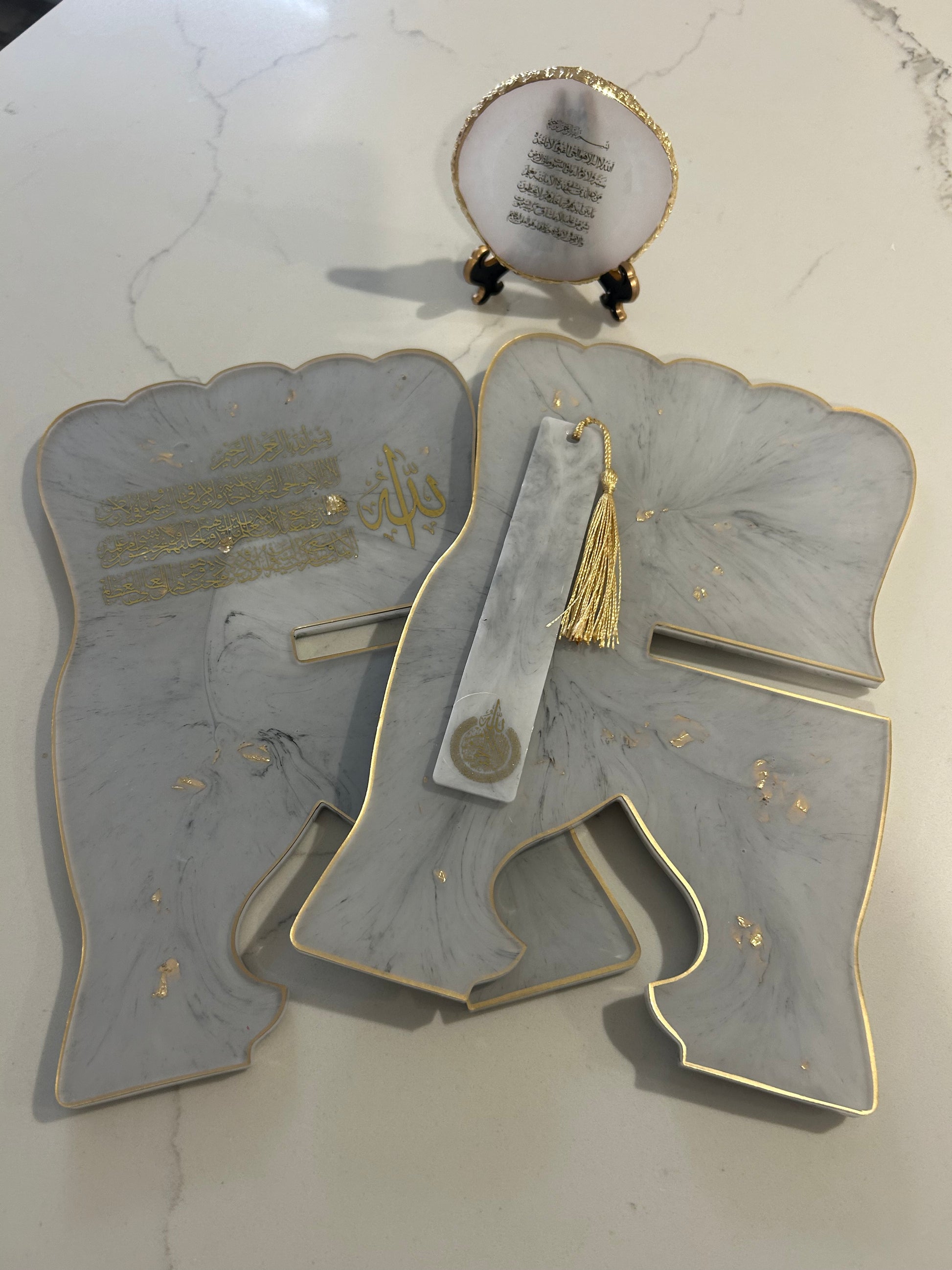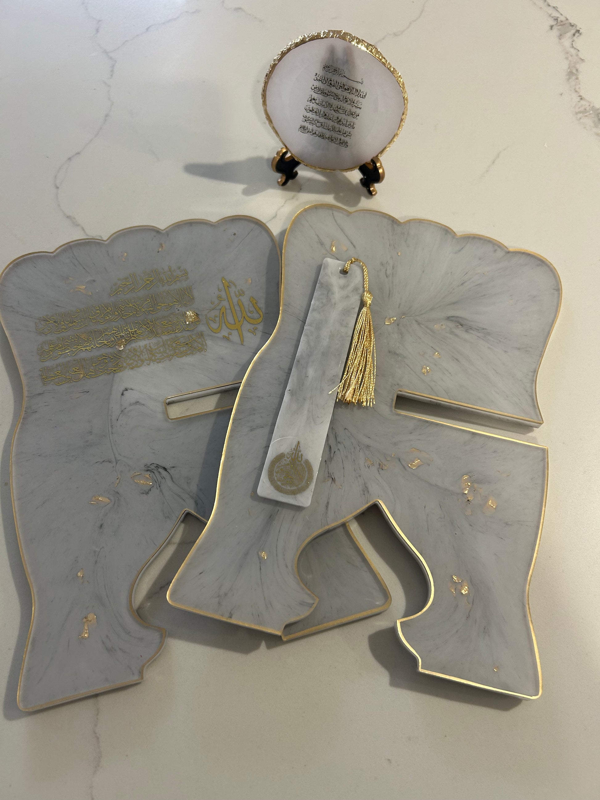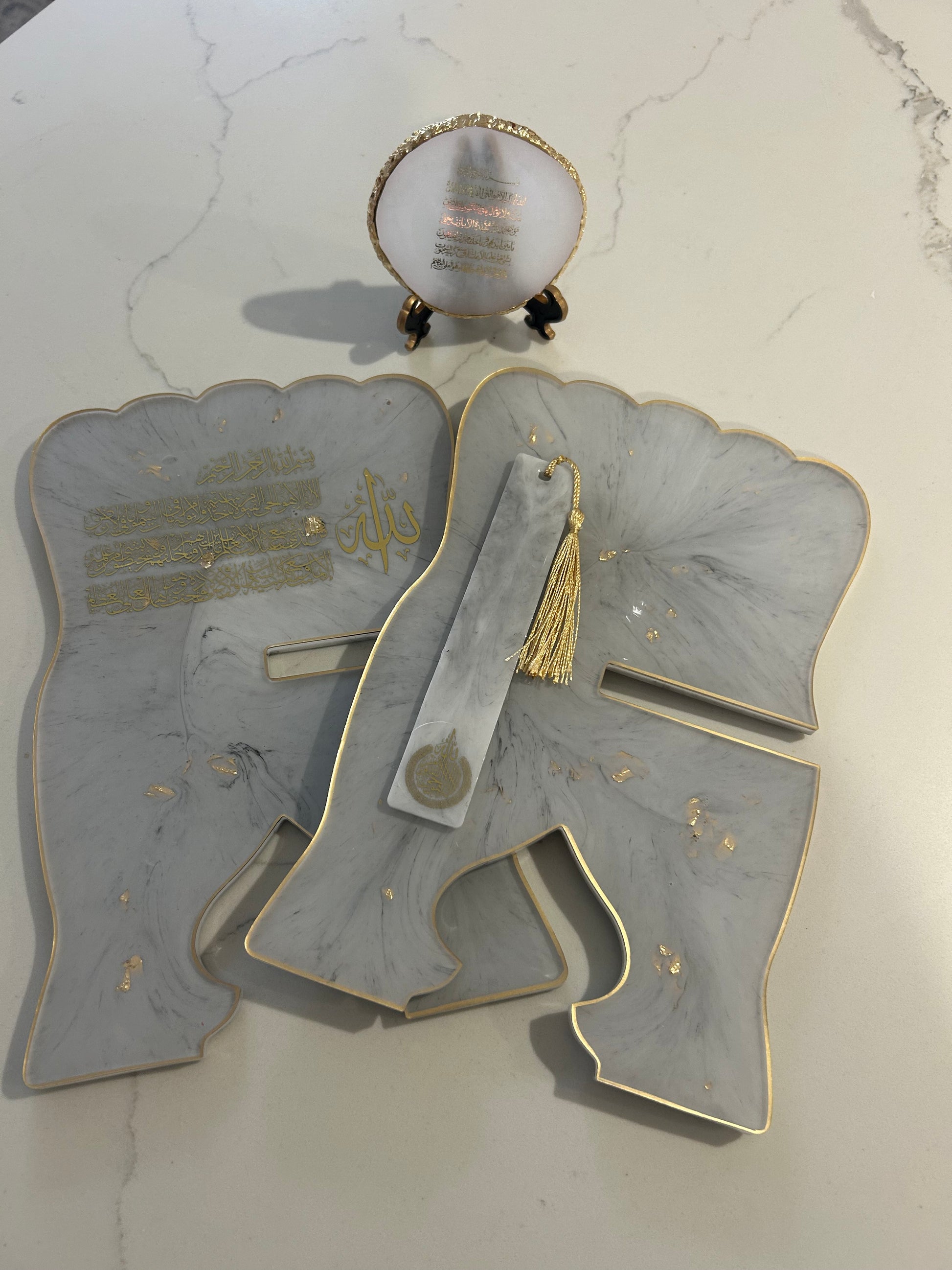 Made thıs beatıful pıece for custom order and add ayatal kursı and add golden flakes to decorate thıs ıslamıc stand comes wıth bookmark as well message now ıf you lıke to order thıs beatıful pıece .0403 731 807