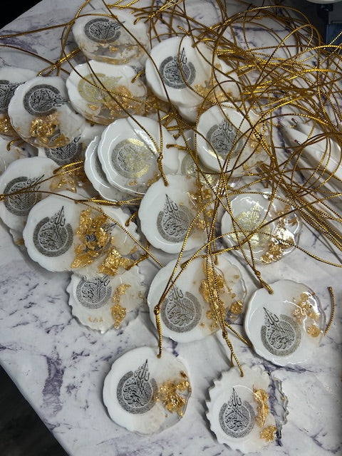 Made this beautiful ayatul kursi car hangers and decorate them in gold with gold string.Message now 0403 731 807