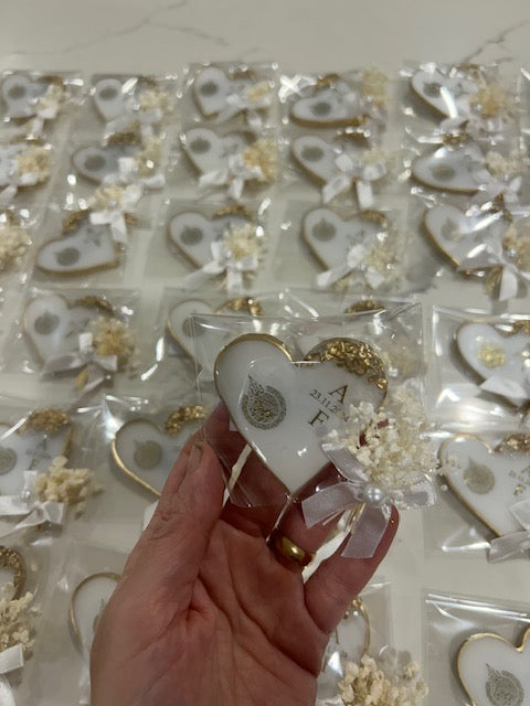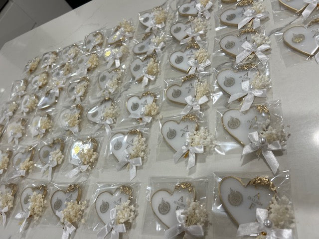 We made this beautiful heart magnets for the guests and personalise couples' names and Doa and decorate with gold pieces. Message through WhatsApp if you like to order and design yours today 0403 731 807 .