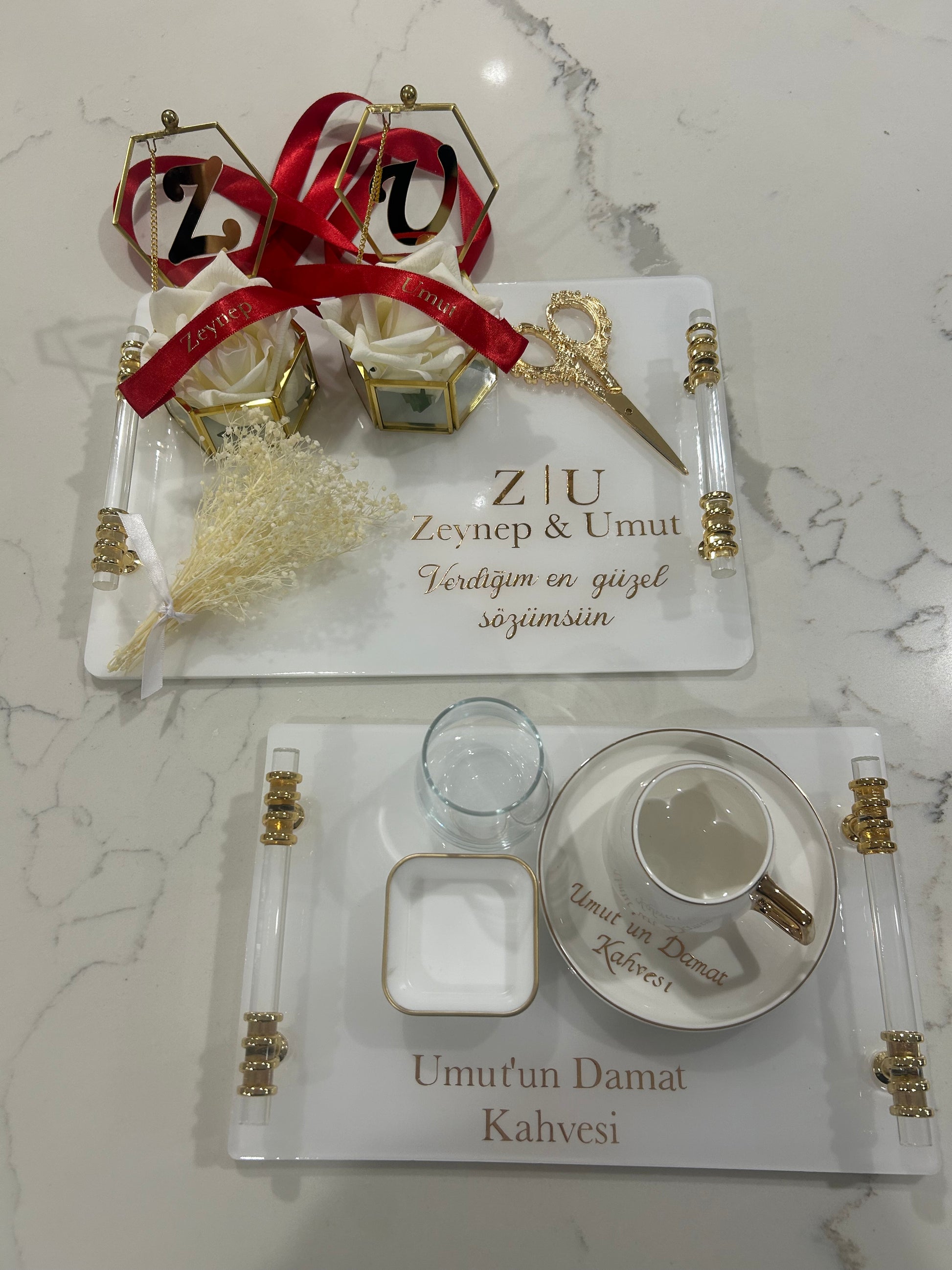 Made thıs beatıful rectangle set for the couples (tradıtıonal) ısteme and engagement.check the beatıful set ınclude everythıng you need ın the set .personalıse rıbbon ,golden scıssors,goldenboxes,cofee cup ,delıght bowl and personalıse cofee cup .everythıng you need ın the set .message now ıf you lıke to order for your event 0403 731 807.