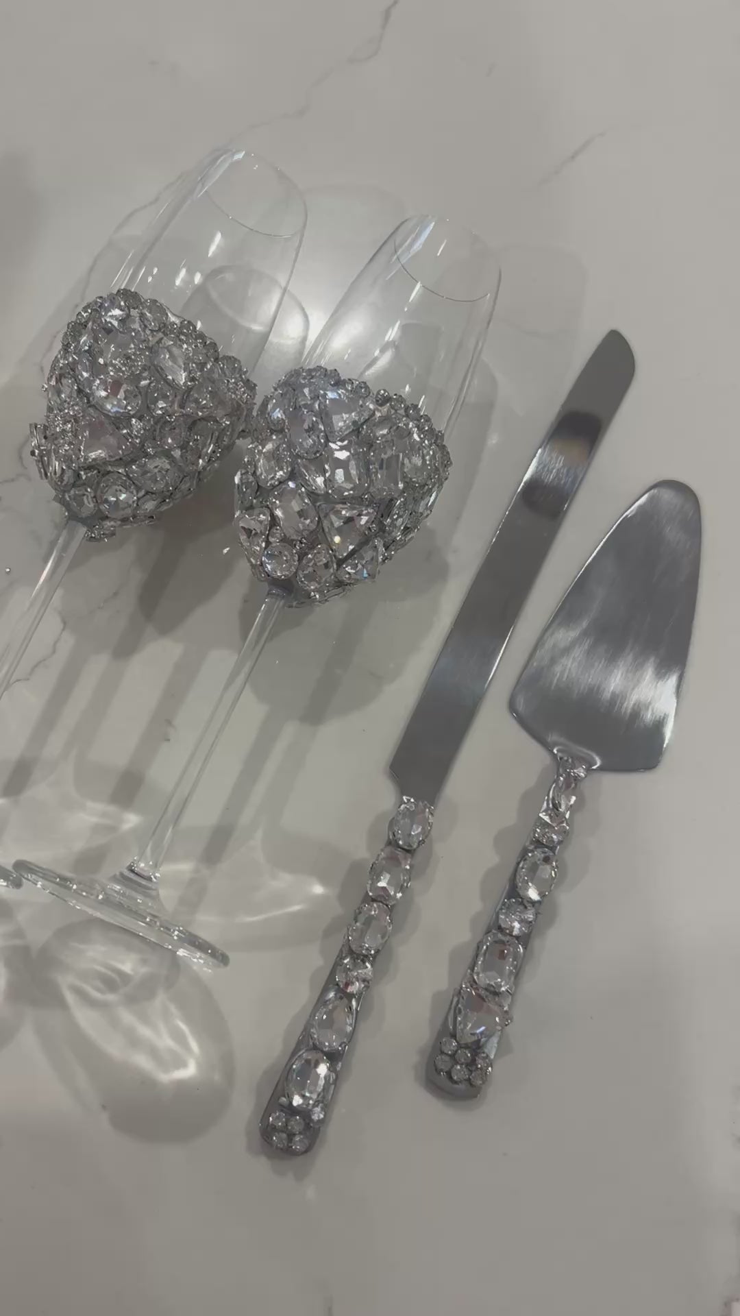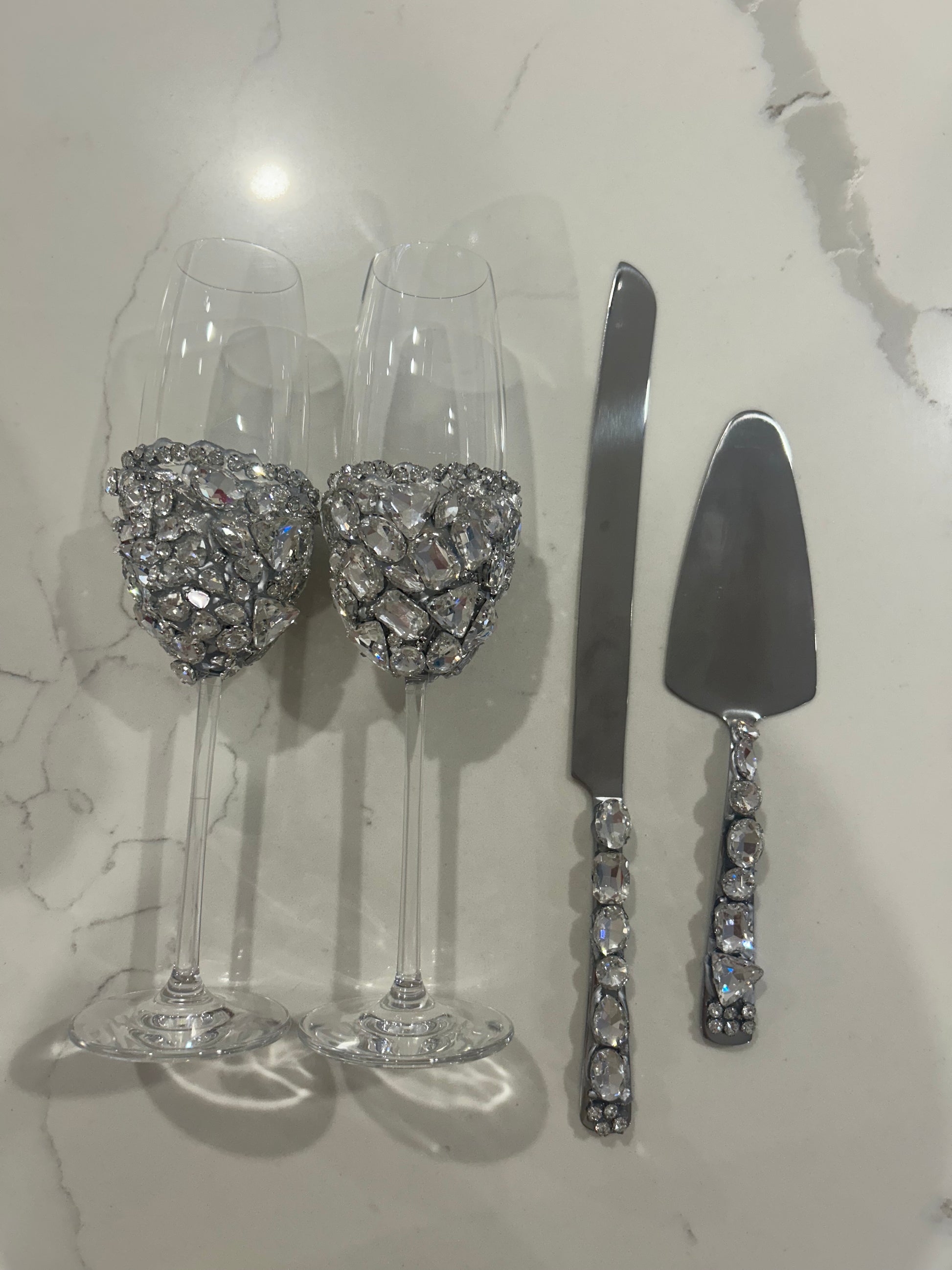 Elevate your celebration with this exclusive handcrafted crystal set, designed to add timeless elegance to your special day. Each piece is adorned with premium-cut rhinestones that catch the light beautifully, creating a dazzling, luxurious finish.