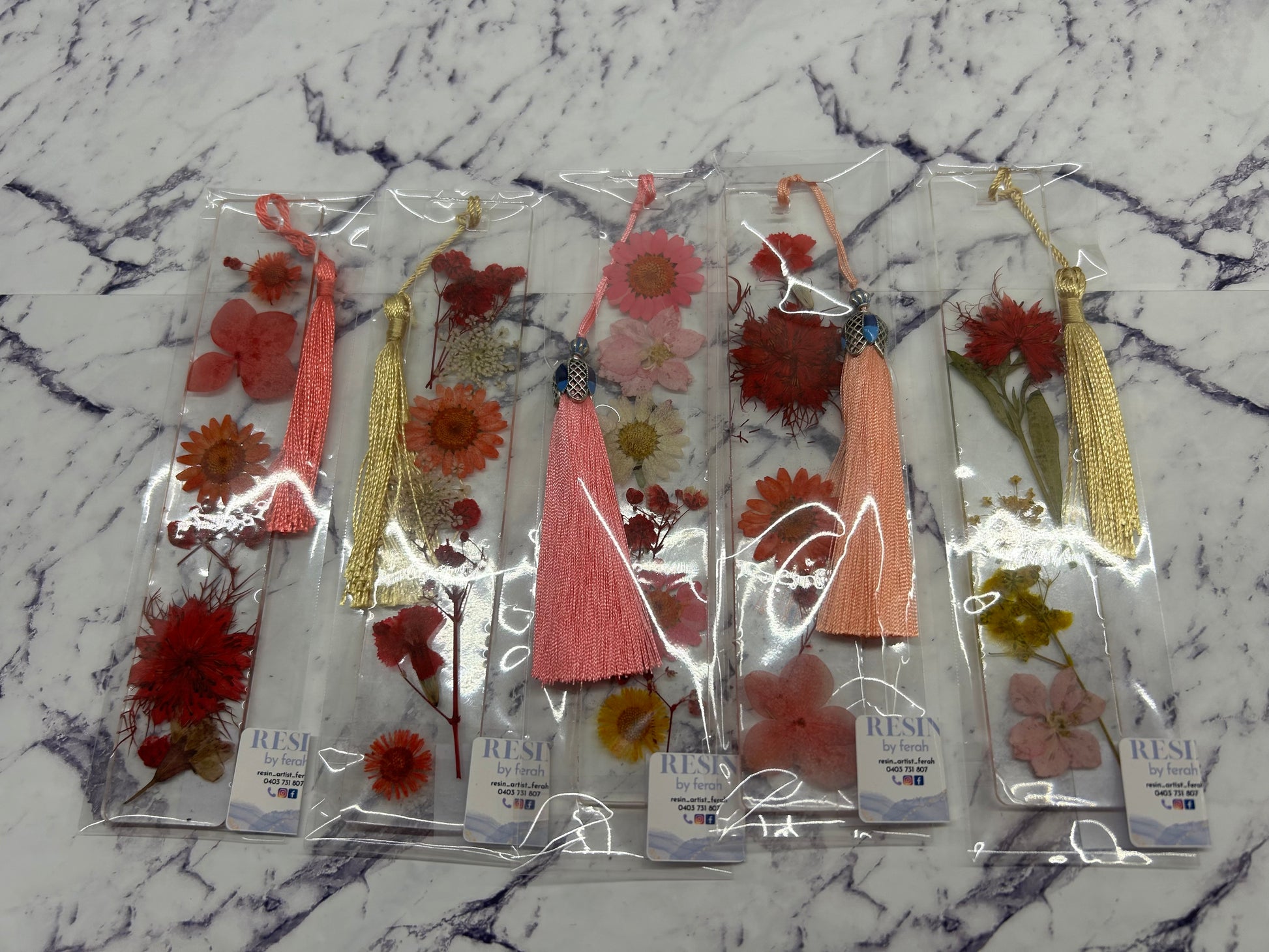 Made these beatıful bookmarks and used all real flowers ın the bookmarks and choose your favourıte colour of bookmarks and message now 0403 731 807