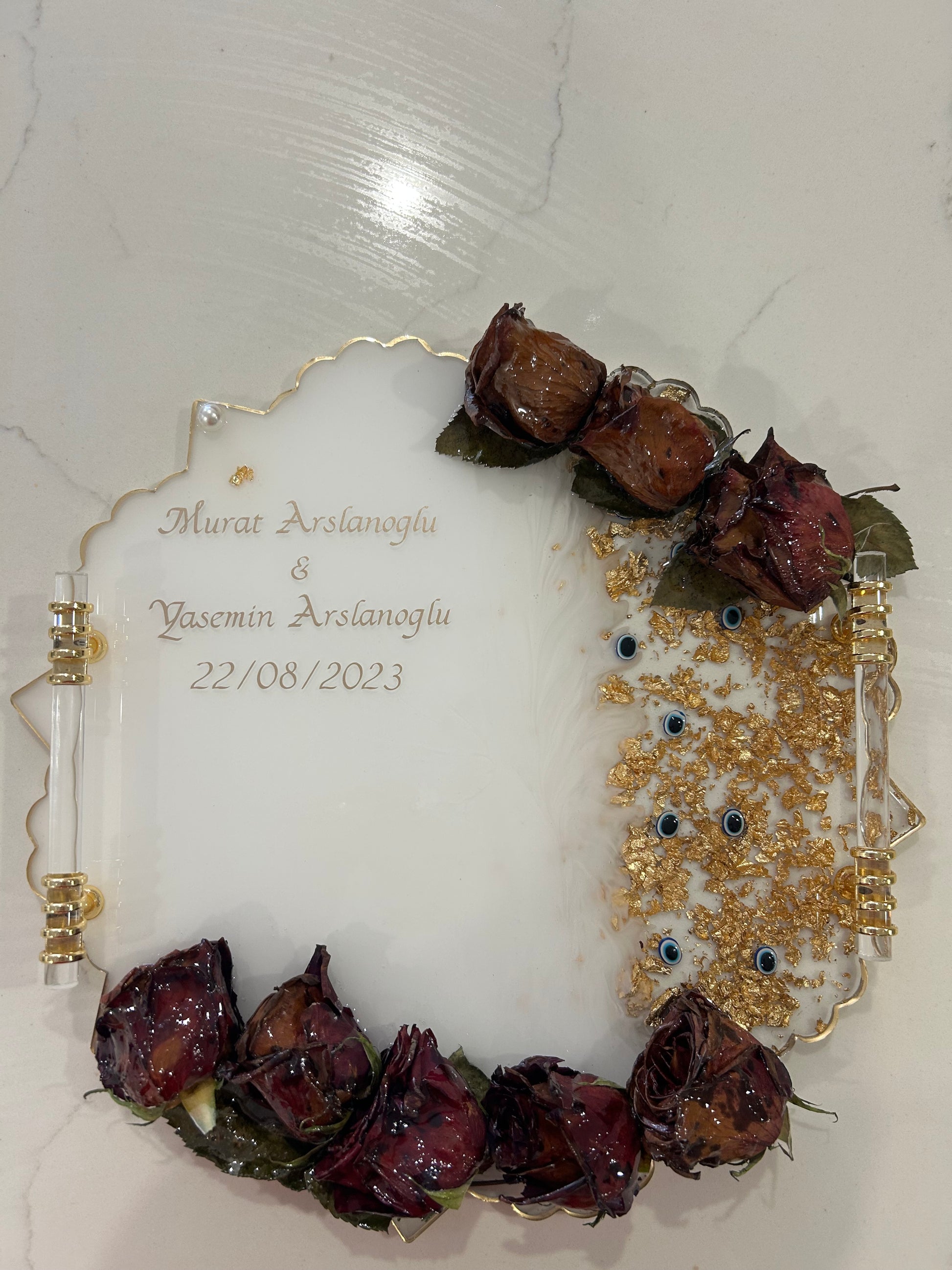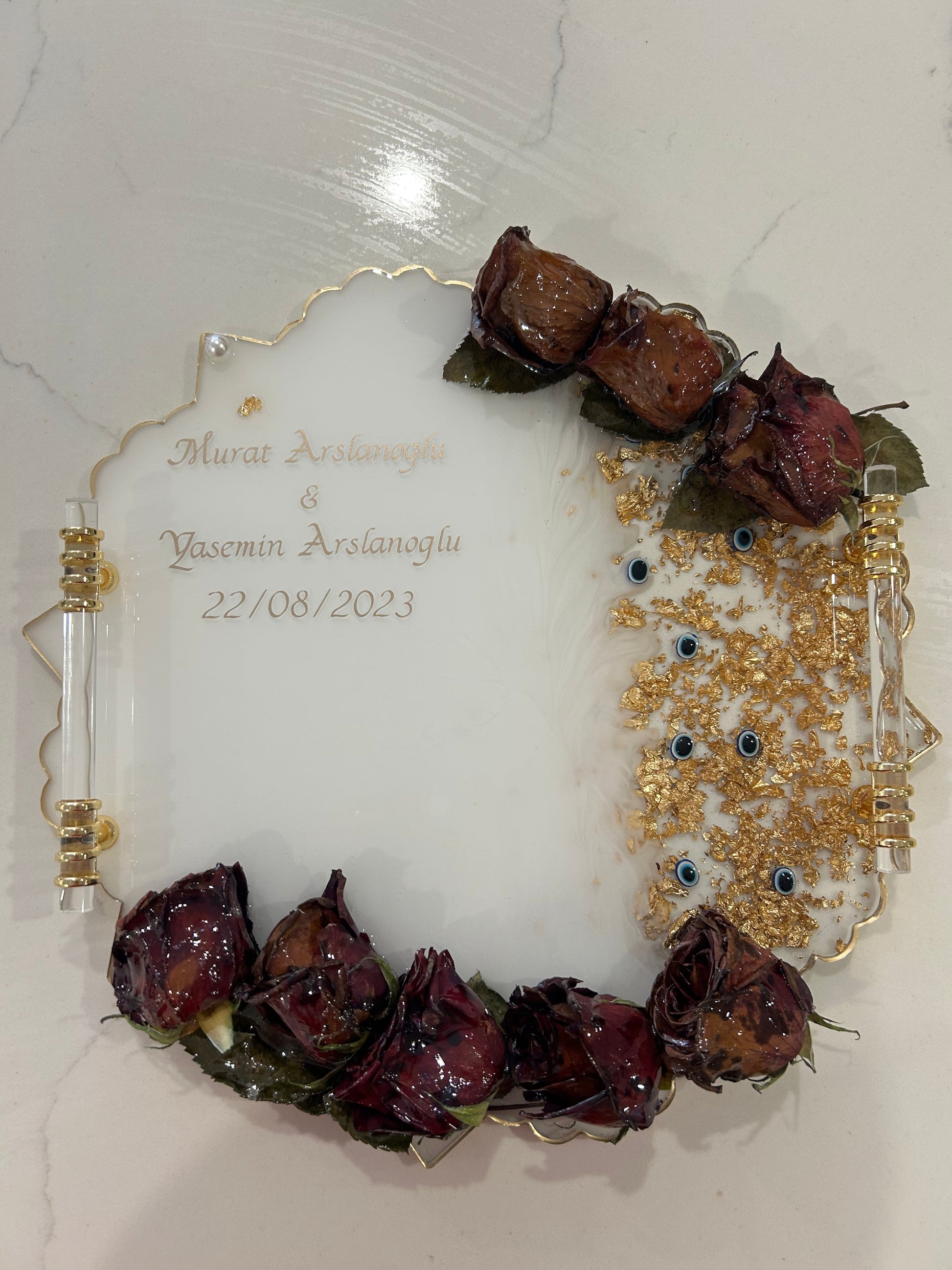Preserve our weddıng roses on the large tray and personalıse couples names and beatıful memory keep forever message now ıf you lıke to send me your flowers 0403 731 807.