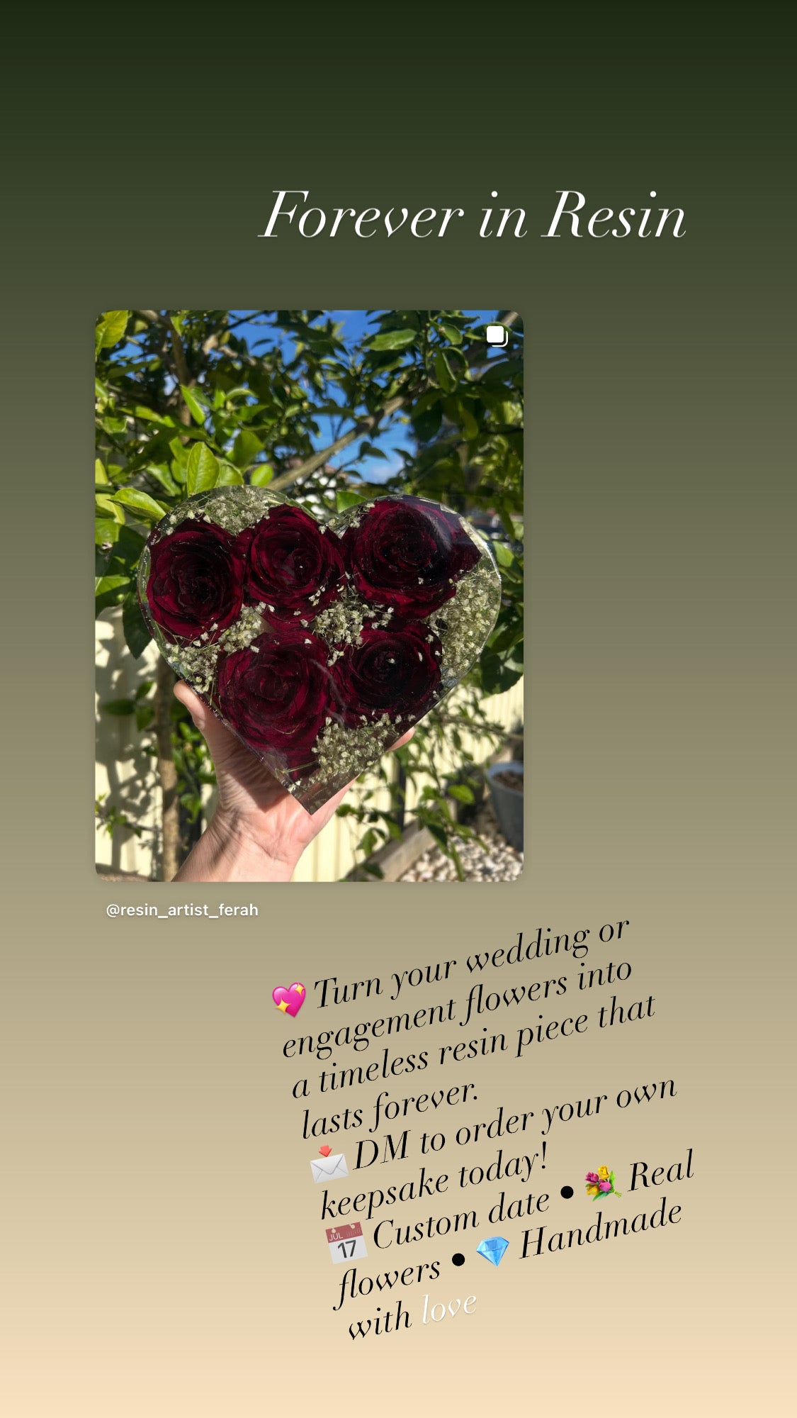 💖 Turn your wedding or engagement flowers into a timeless resin piece that lasts forever.