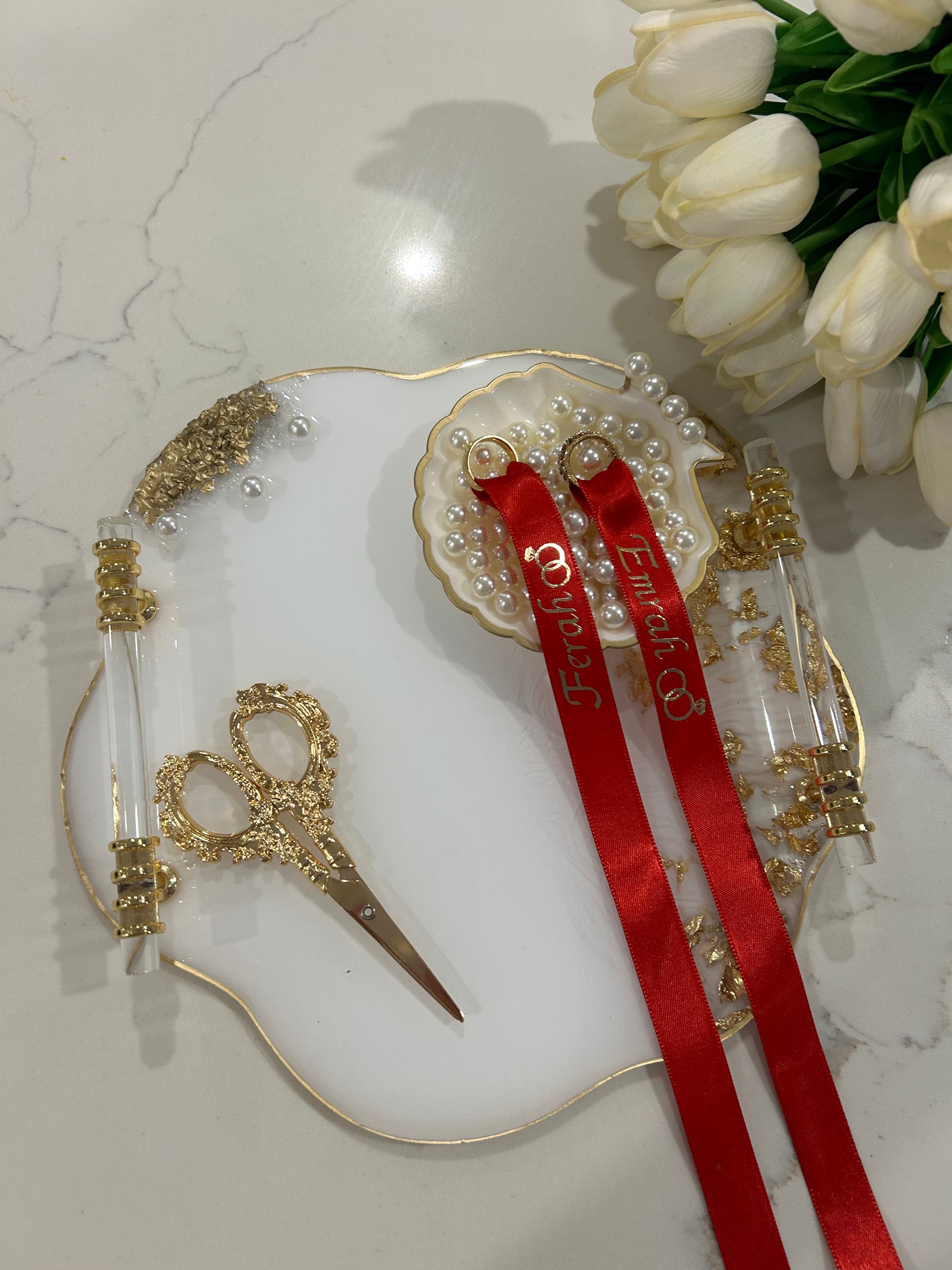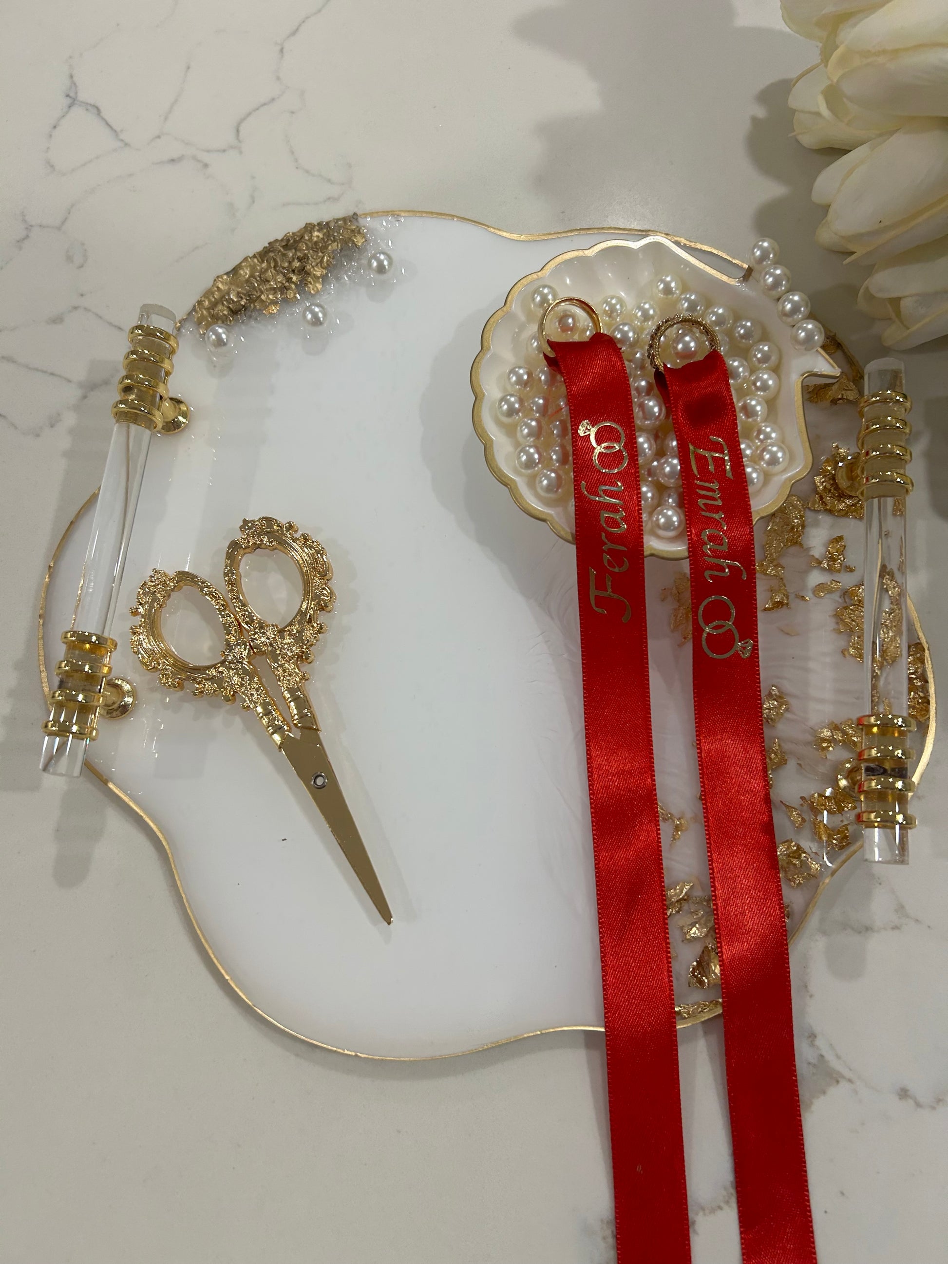 made this elegant tray using high-quality resin, blending soft white tones with pearl accents to create a timeless look. It’s beautifully decorated with delicate ribbons and elegant shells, making it the perfect centrepiece for celebrating a wedding or engagement. A graceful and unique handmade piece to mark a special moment in style. Message now if you like to order ,0403 731 807