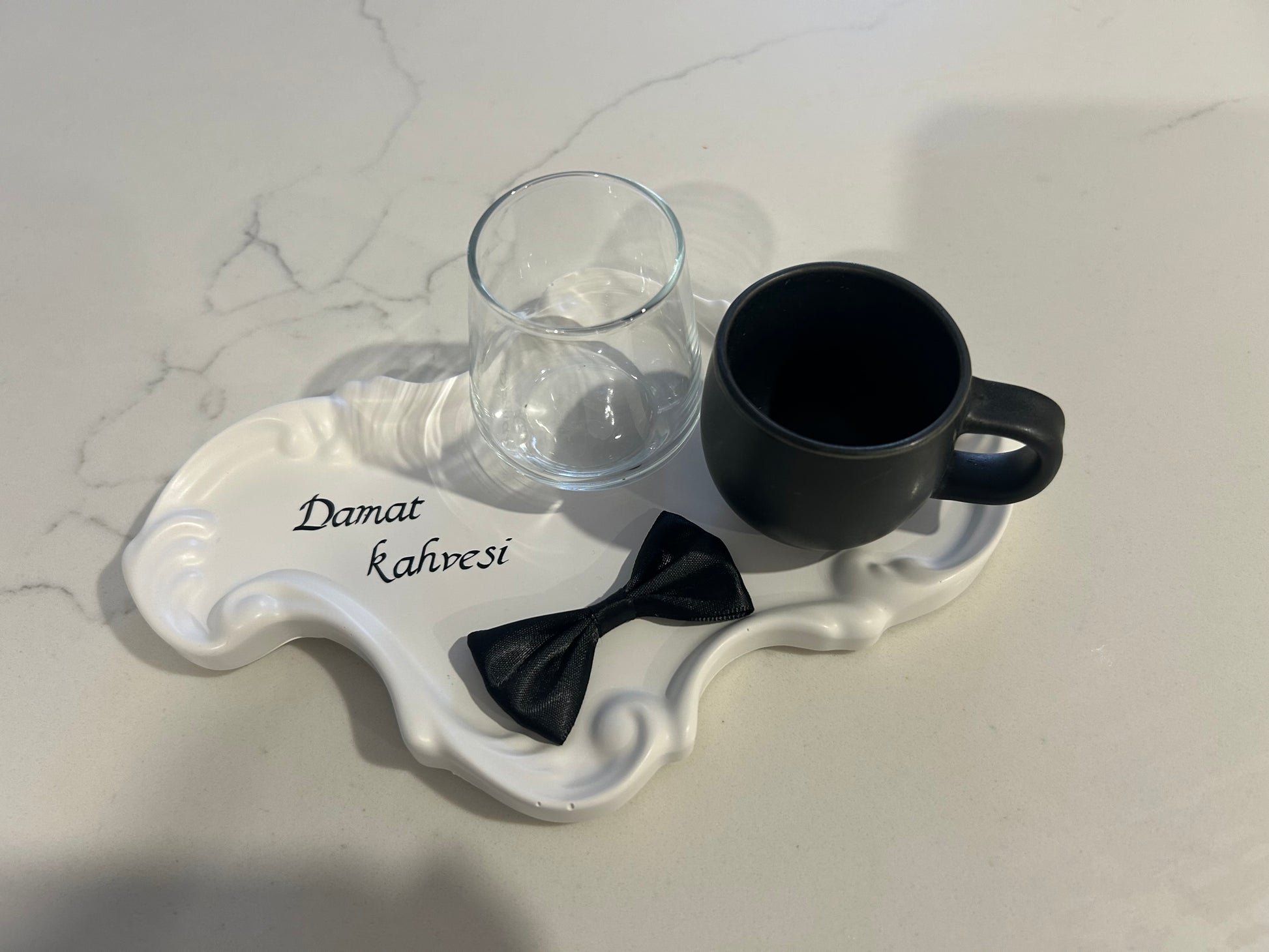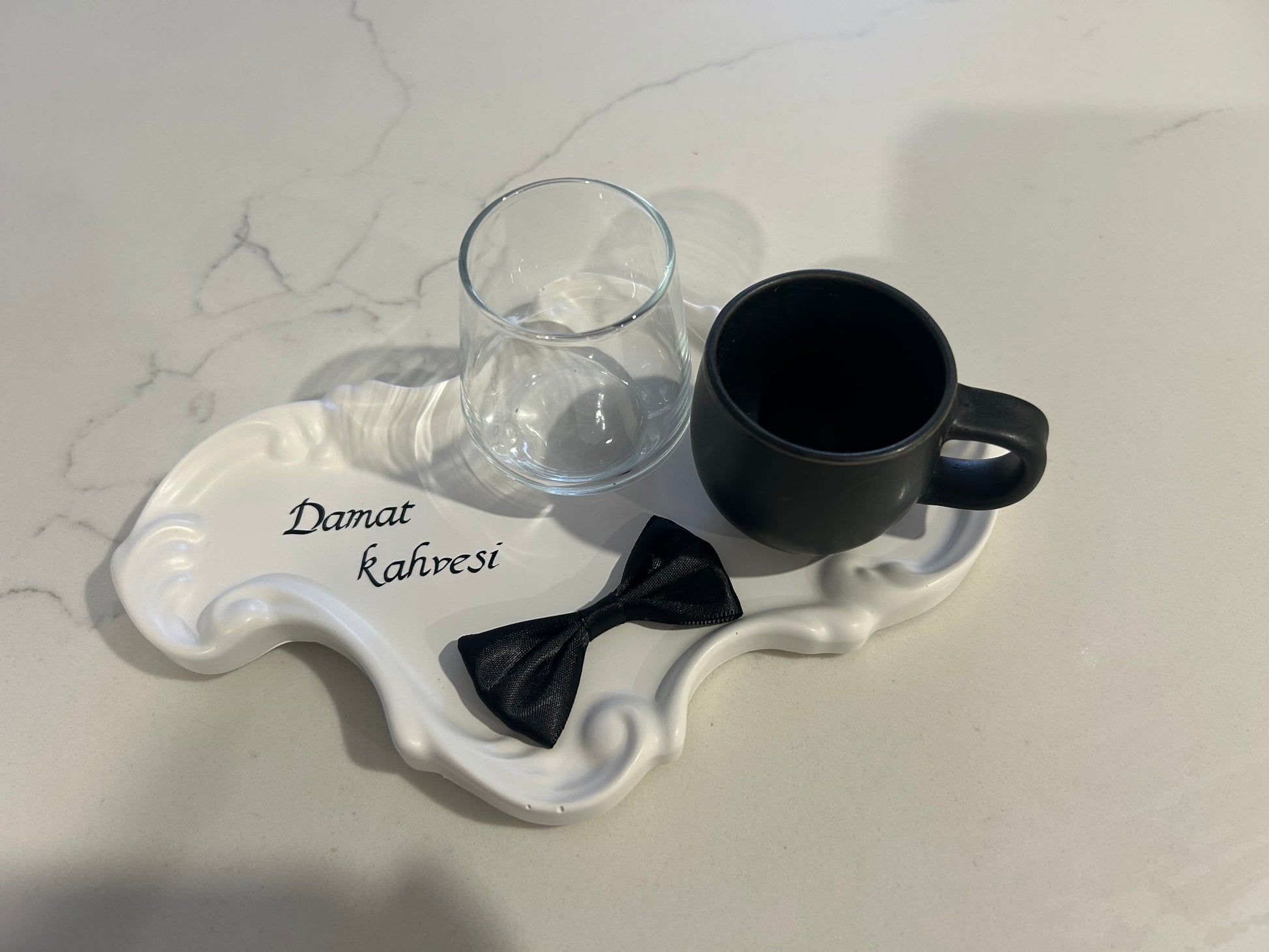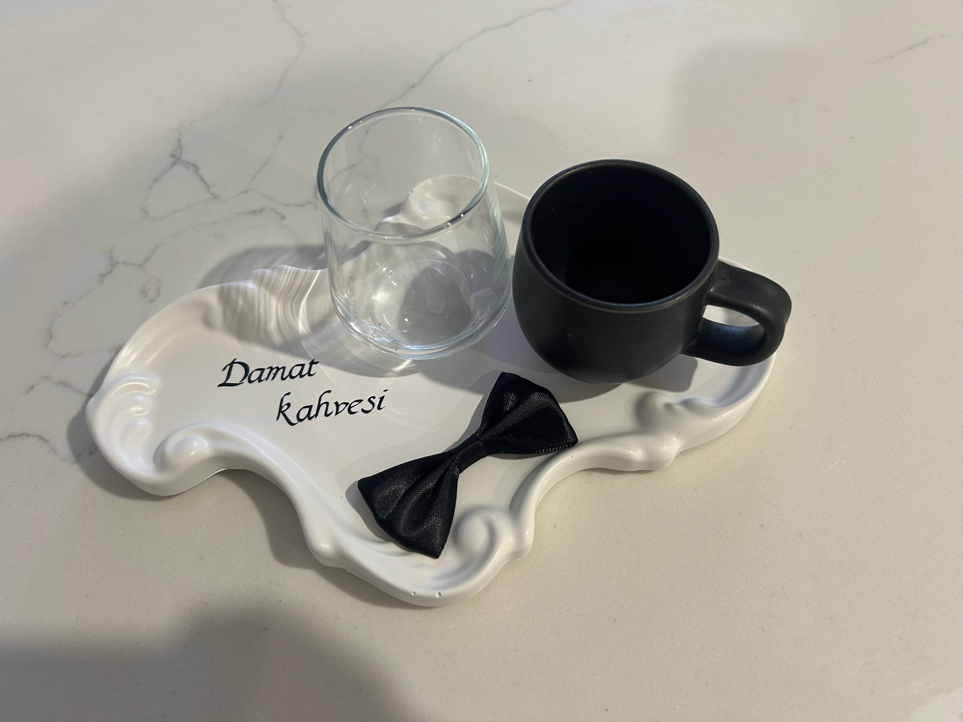 I made this beatiful plate for groom cofee day and message now if you like to personalise your name and comes everything in the set cofee cup ,water cup and small personalise plate .0403 731 807