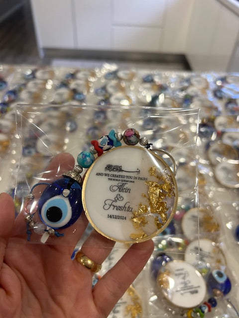 Made our wedding round magnets for who getting married and personalize couples names and packed with blue eye.message now if you like to order your weding gifts.whataspp 0403 731 807.